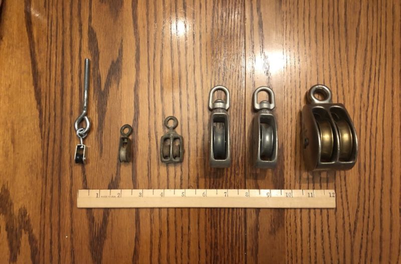 Title (ebay affiliate link): Large Lot Of Small Size Assorted Block Tackle Pulleys