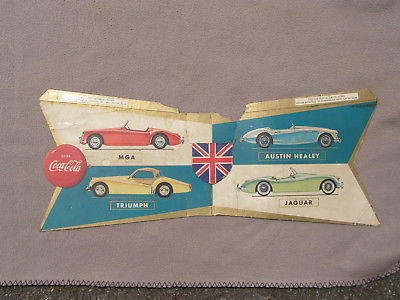 Title (ebay affiliate link): Vintage Coca-Cola Store Adv Cardboard Sign British Cars MGA Jag Triumph Austin