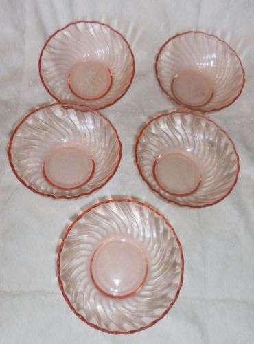 Title (ebay affiliate link): 5 Pink Depression Glass Berry Bowls - Marked Arcoroc - Made in France No Chips