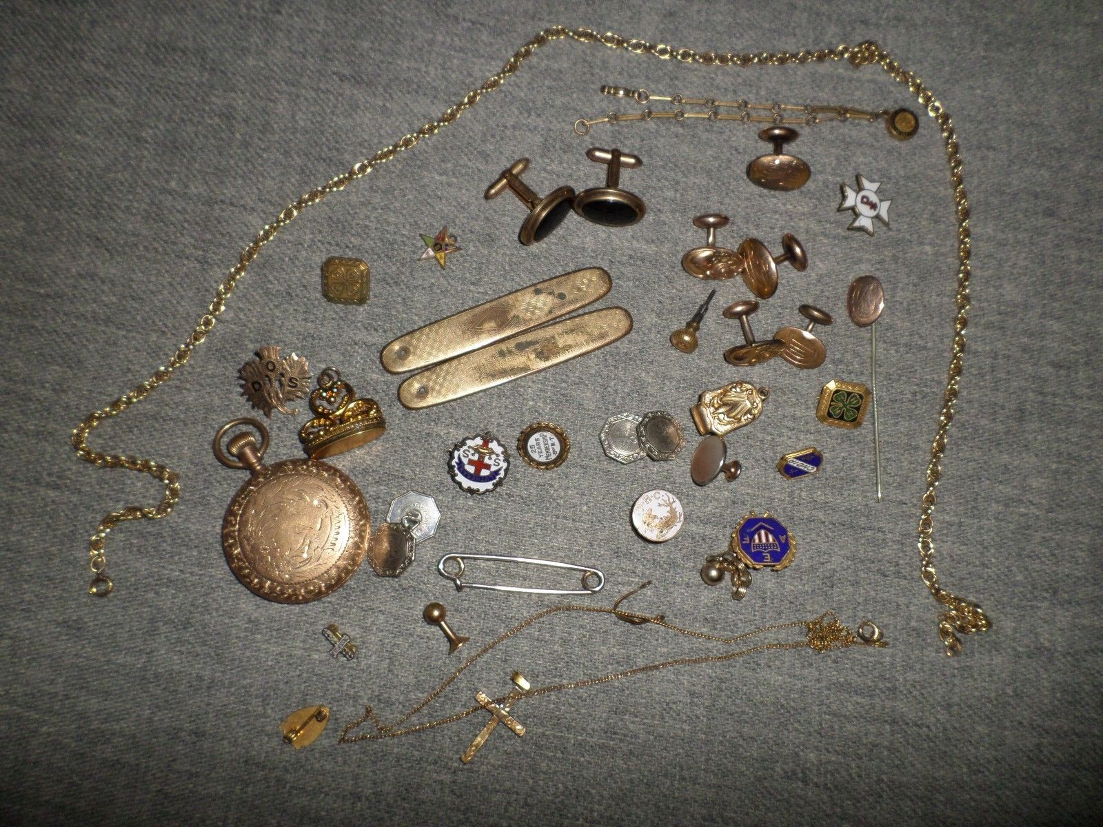 Title (ebay affiliate link): Antique Gold Filled Plate Jewelry Lot Scrap not Scrap 93g