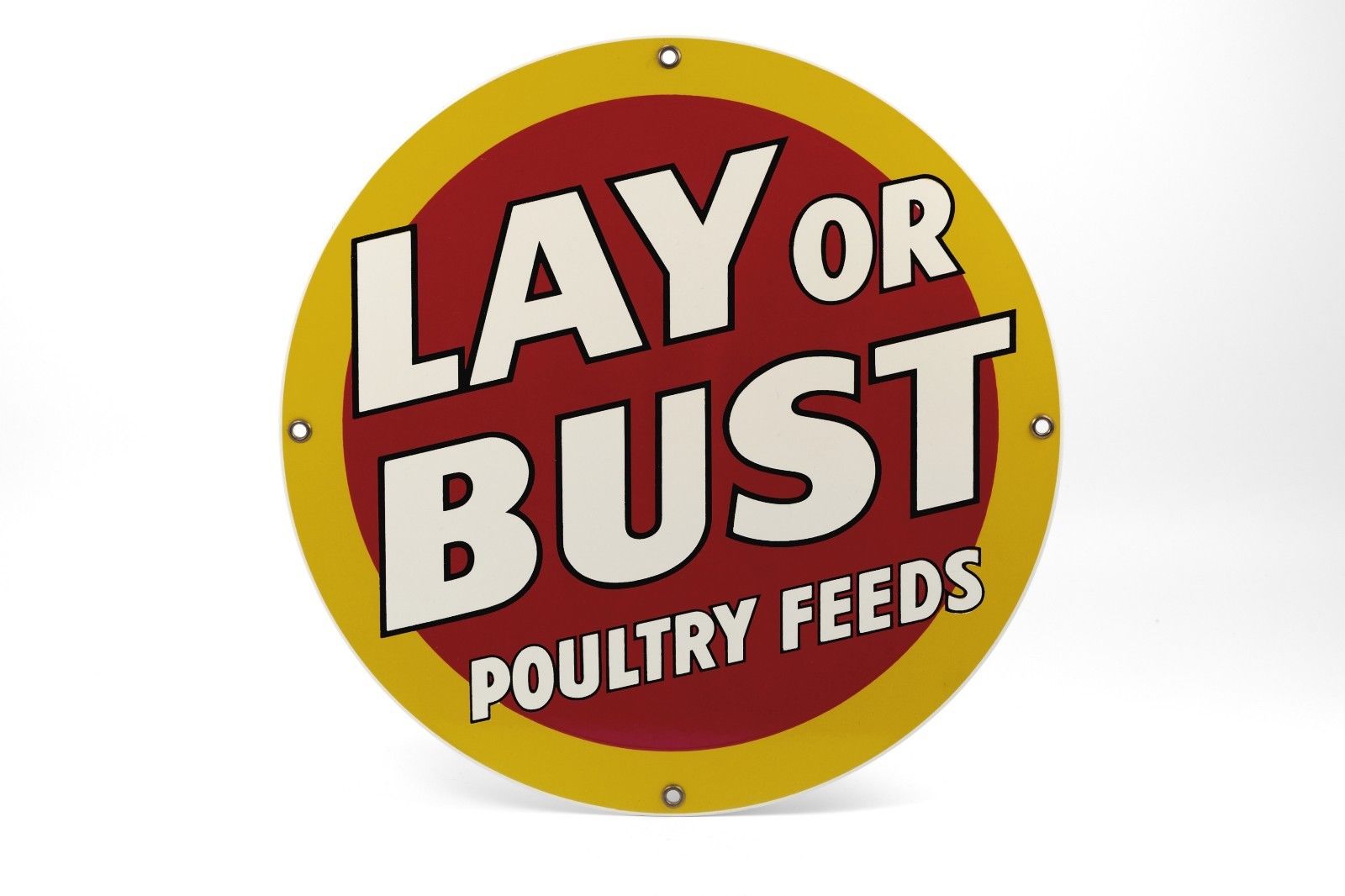 Title (ebay affiliate link): Ande Rooney LAY OR BUST POULTRY FEEDS Porcelain Sign Reproduction 1986, Minty!!!