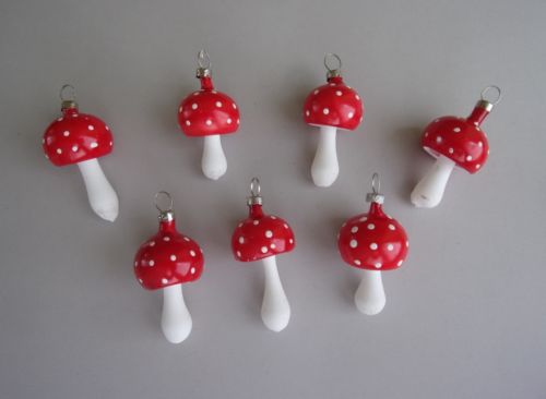 Title (ebay affiliate link): Lot of 7 VINTAGE BLOWN GLASS MUSHROOMS CHRISTMAS ORNAMENTS