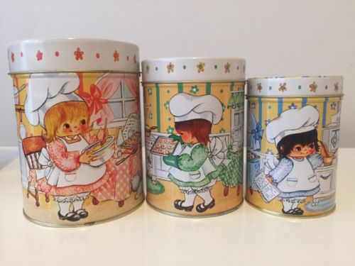 Title (ebay affiliate link): Vintage House Of Lloyd Inc. 1985 Stack-able 3 TIN CANISTERS with Lids