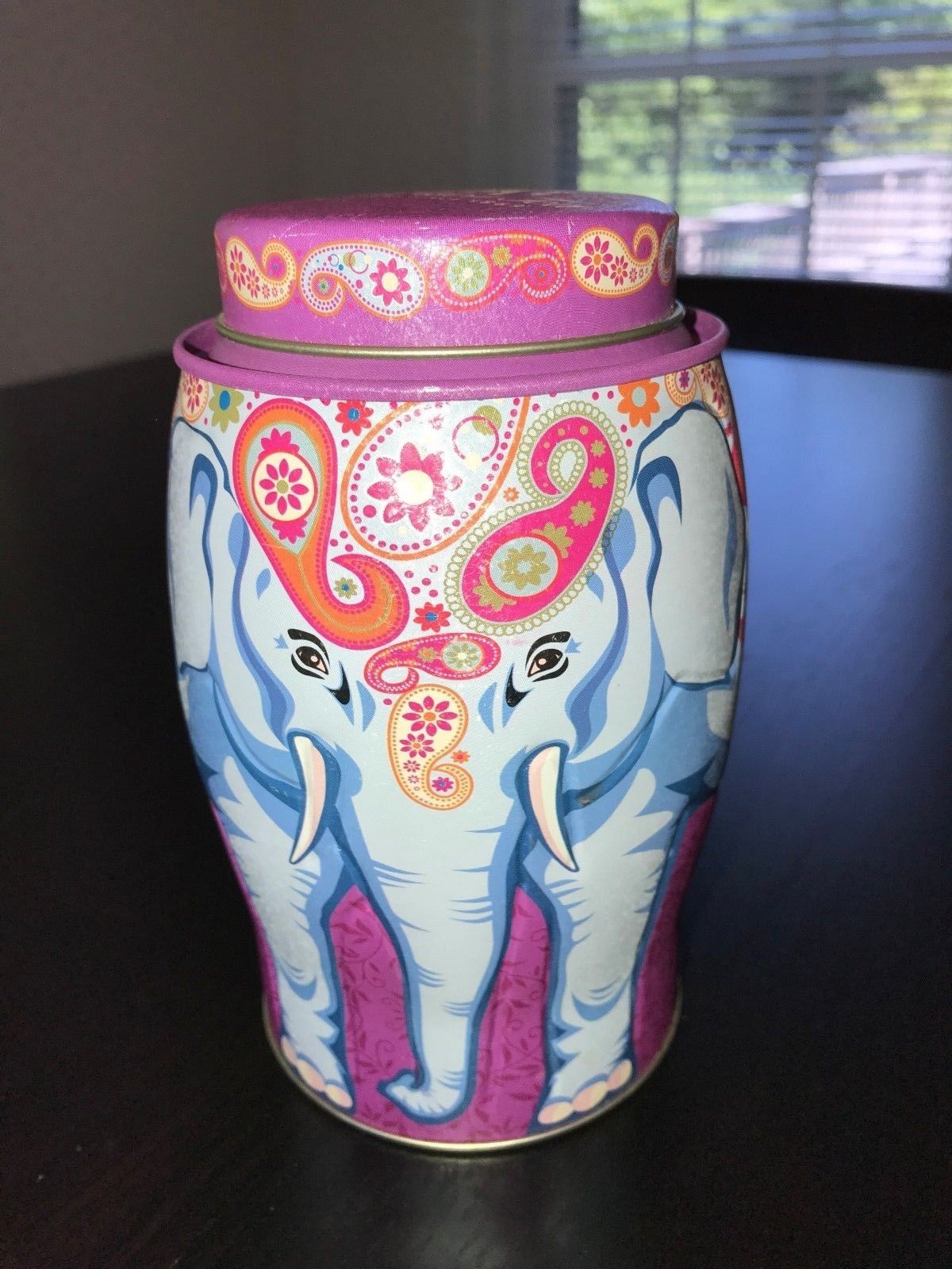 Title (ebay affiliate link): Williamson Tea Purple Paisley Elephant Collectable Caddy Tin