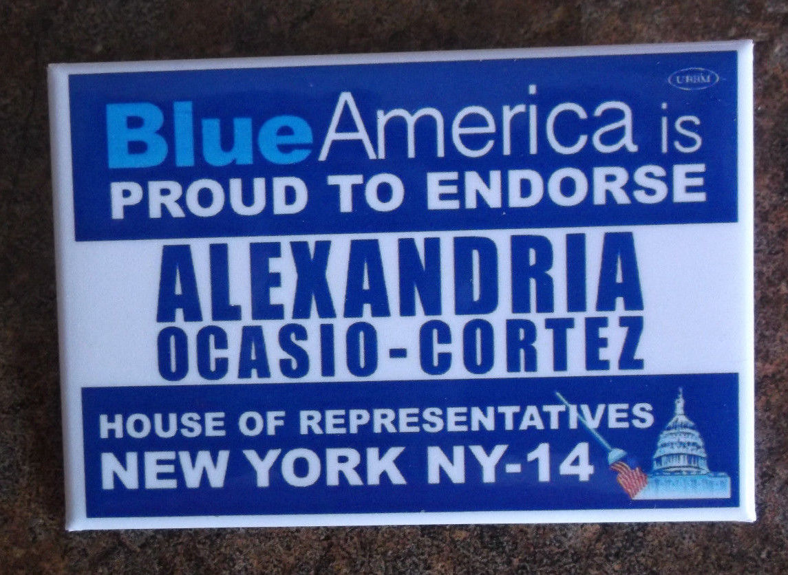Title (ebay affiliate link): 2018 NEW YORK CD-14 Democrat ALEXANDRIA OCASIO CORTEZ Congress BLUE AMER Button