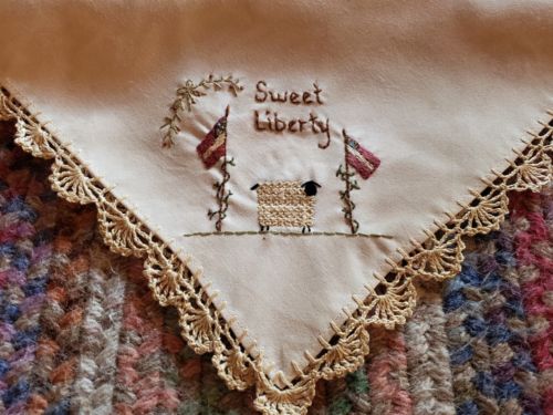 Title (ebay affiliate link): ~*Awesome~* Primitive "Sweet Liberty w/ Sheep" Hand Stitched Doily! Oh My!