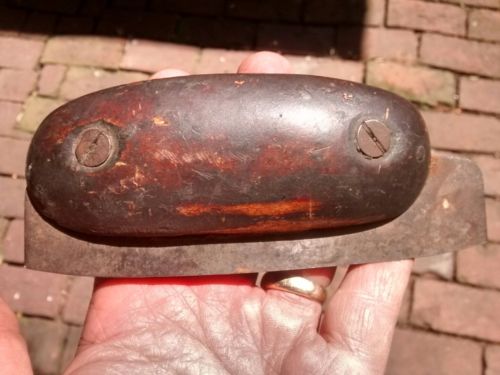 Primitive Antique Farm Tool Hog Scrapper Curved Fixed Blade Wood Handle ~6"