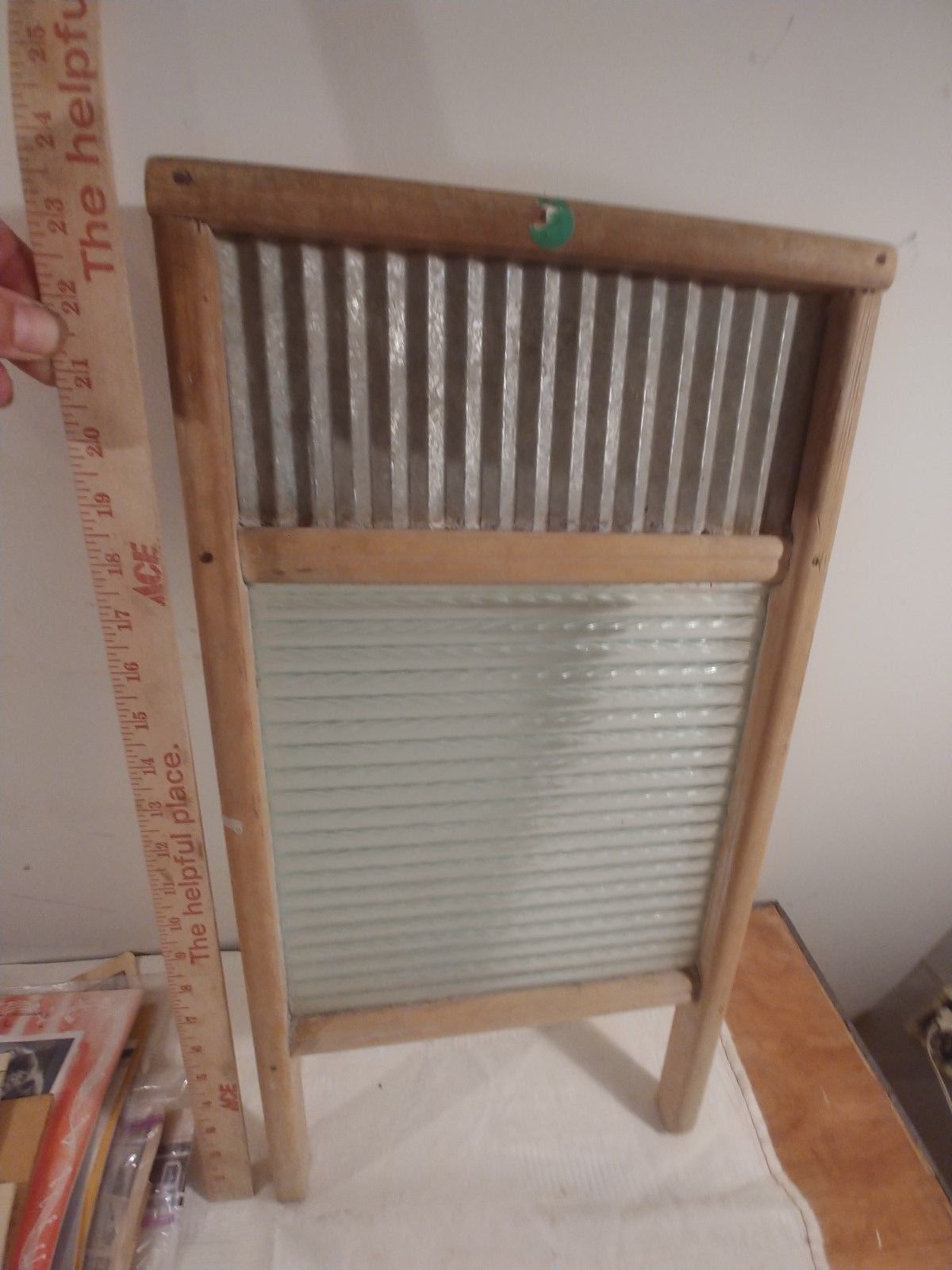Title (ebay affiliate link): Vintage Antique National Washboard Co. w/ Glass & Wood Frame galvanized metal