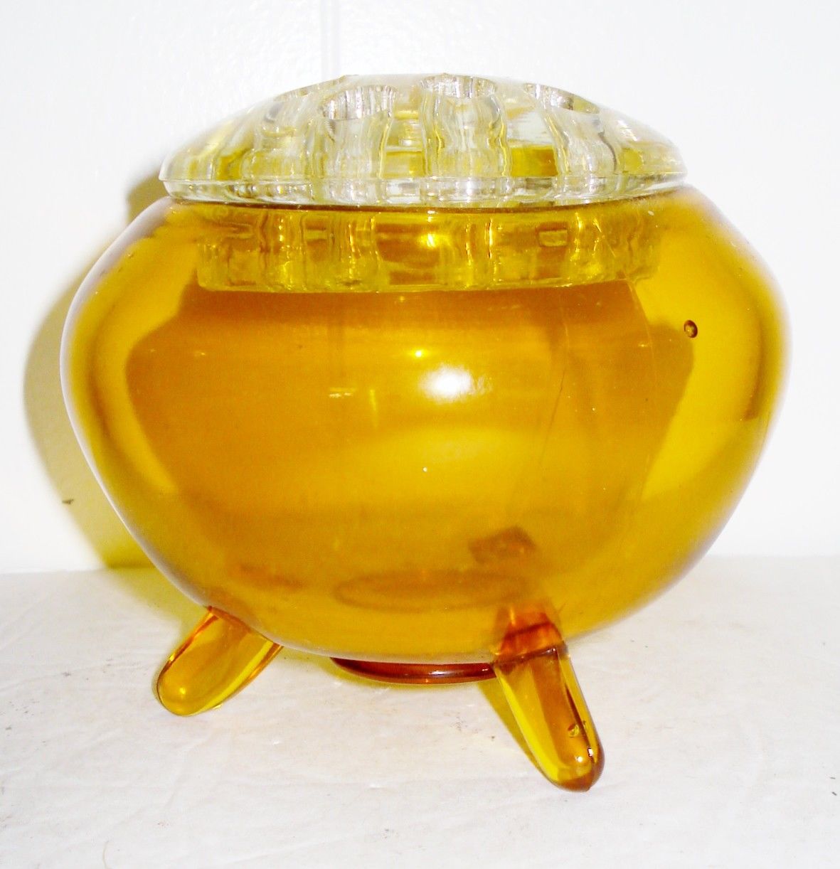 VINTAGE AMBER GLASS FLOWER FROG BEAUTIFUL DESIGN NR