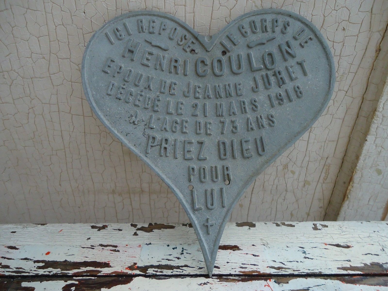 Antique French "Heart Shaped Memorial Plaque" 1919, Cast Metal