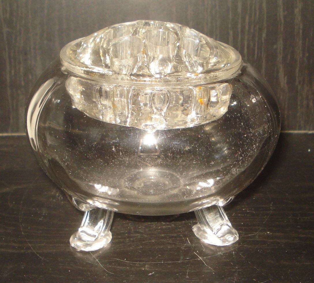 VINTAGE CLEAR GLASS FLOWER FROG BEAUTIFUL DESIGN NR