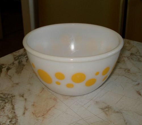Title (ebay affiliate link): Vintage Hazel Atlas Milk Glass Yellow Polka Dot Rolled Rim Small Mixing Bowl