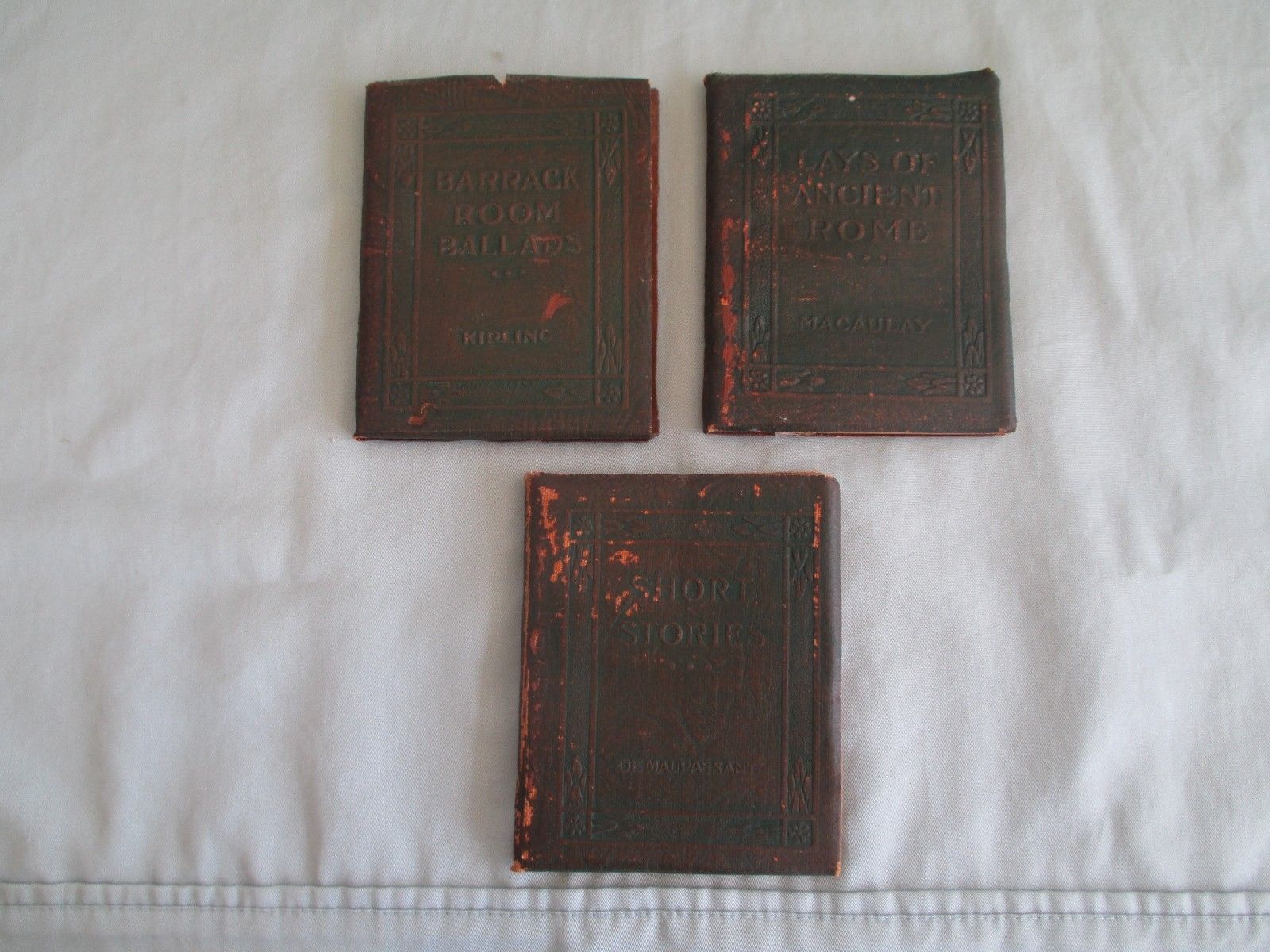 Title (ebay affiliate link): 3 Little Leather Library Miniature Books 1920 Kipling Macaulay De Maupassant