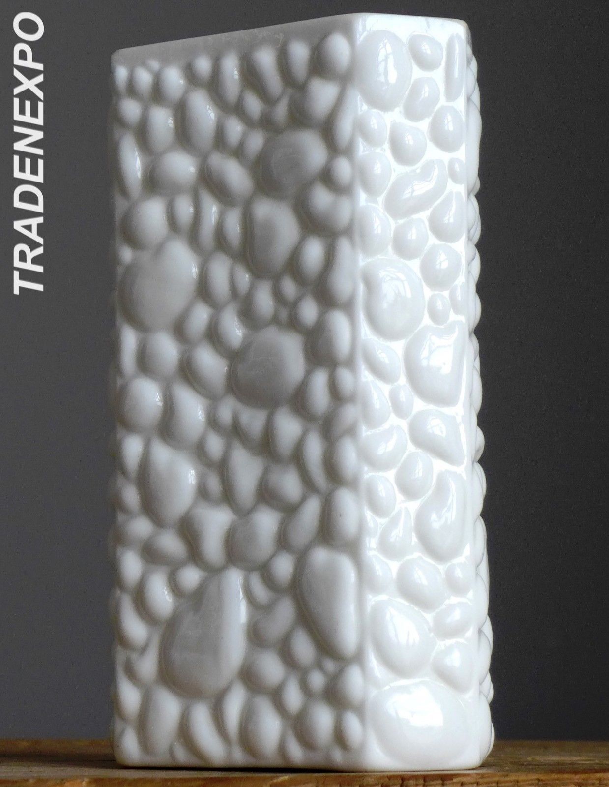 Title (ebay affiliate link): RETRO Vintage 60-70s INGRID White Milk Glass Pebble Vase German Art Fat Lava Era