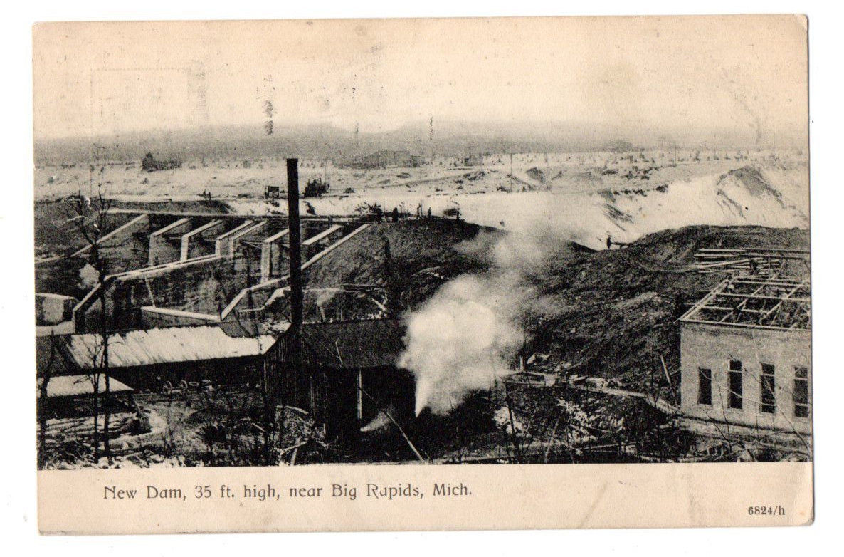 New Dam, Big Rapids, MI 1906 UDB Postcard