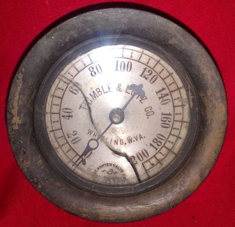 Vintage Brass Steam Gauge Ashton Valve co Tremble & Lutz co. Wheeling, W. VA.