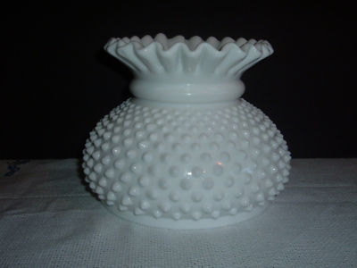 VINTAGE FENTON MILK GLASS HOBNAIL STUDENT LAMP SHADE