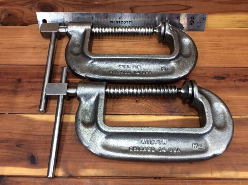 Title (ebay affiliate link): 2 Vintage Wilton 904 C-Clamps / 4" Medium Heavy Duty / Chicago USA