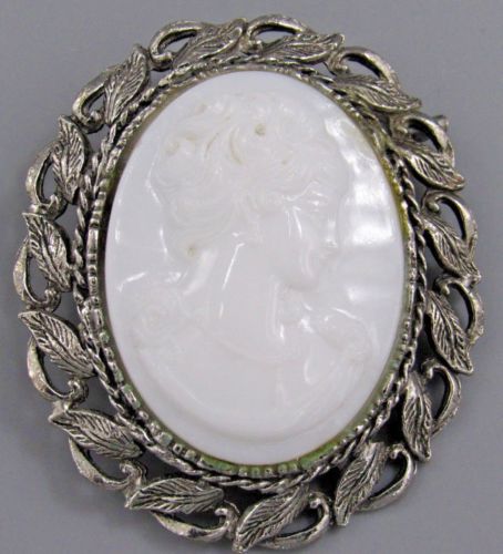 Title (ebay affiliate link): Vintage Jewelry White Milk Glass Colonial CAMEO BROOCH PIN Rhinestone Lot N-1