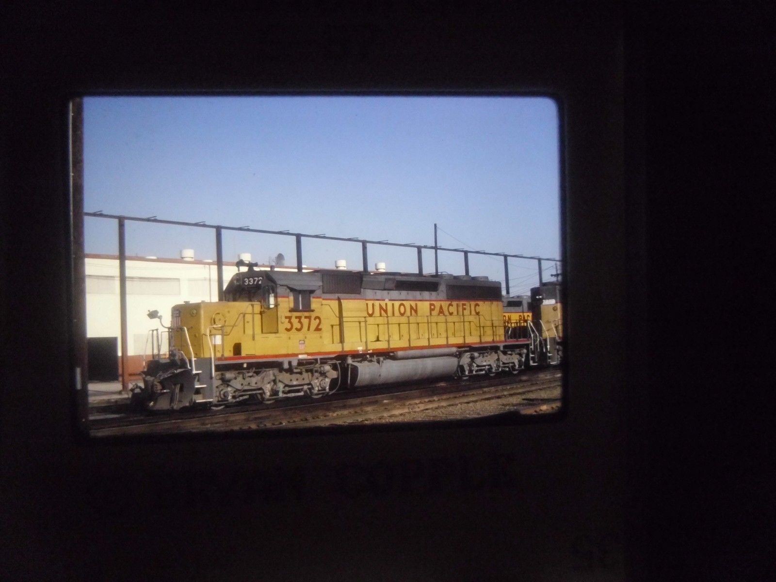 Original Slide Train RR California Stockton UP 3372 GP40 station yard depot jct