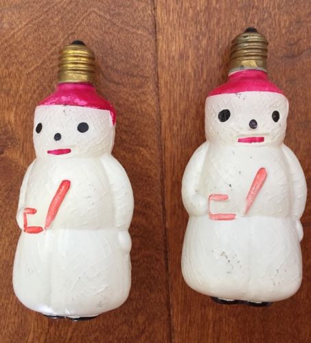 Title (ebay affiliate link): 2 Vintage Christmas SNOWMAN GLASS LIGHT BULB HOLDING STICK - RARE HANDPAINTED !!