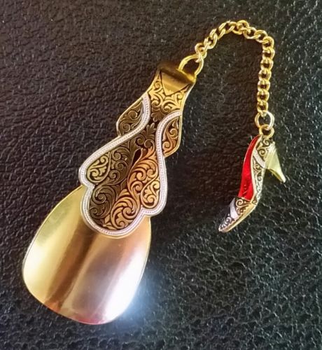Title (ebay affiliate link): VTG Toledo Spain Gold Plated Enamel Shoe Horn High Heel Shoe Charm