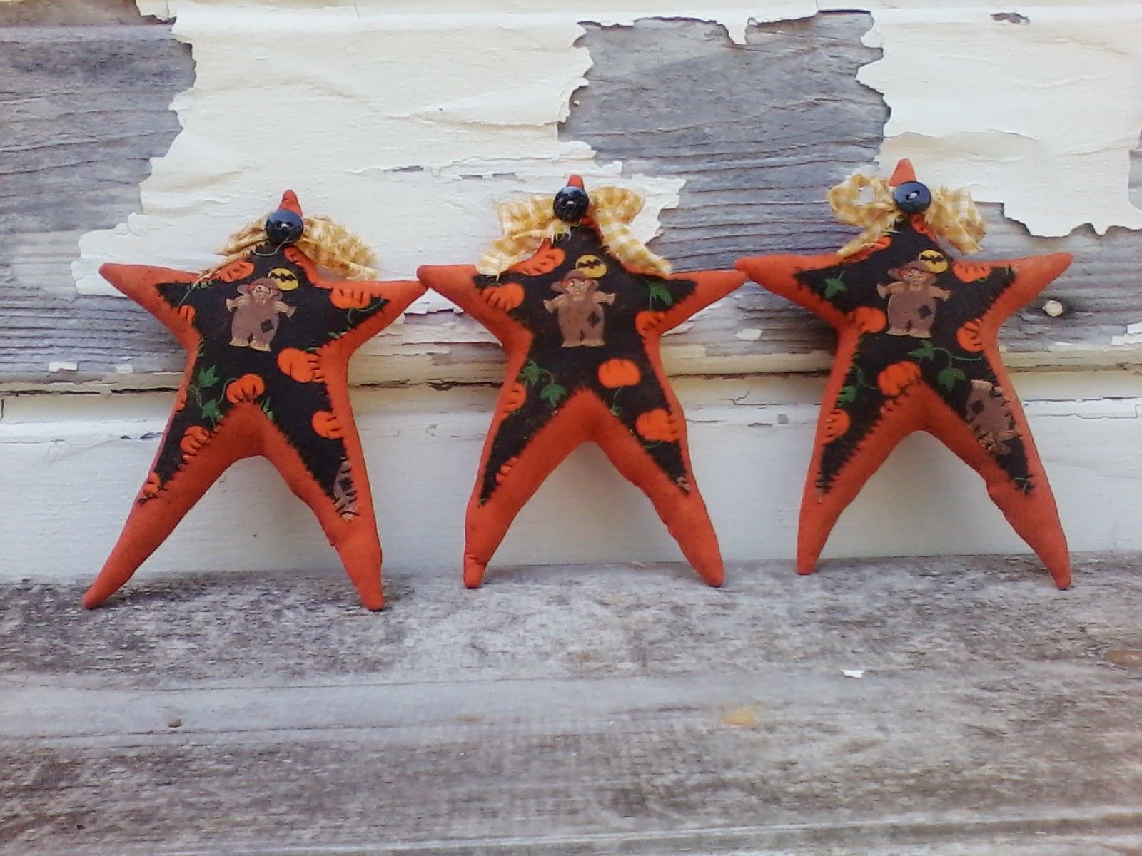 Primitive Halloween Fall Orange Star Ornies Bowl Fillers Decor Set Of 3