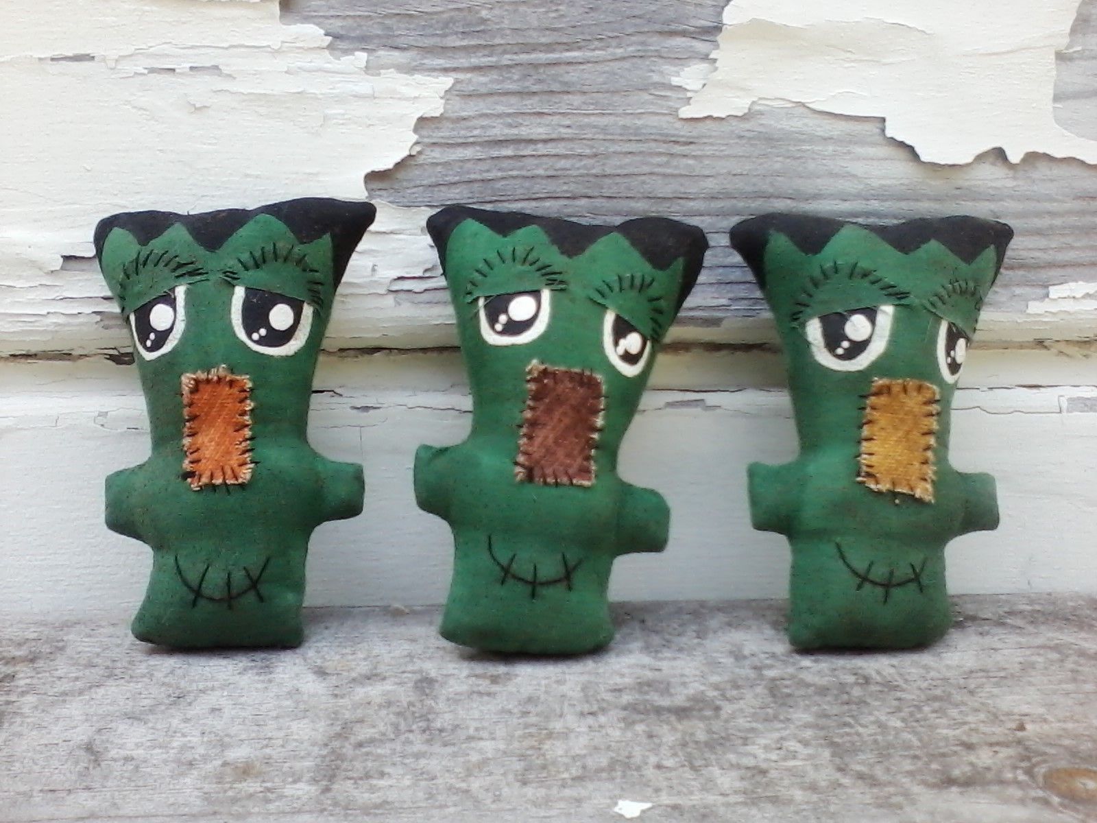 Primitive Halloween Green Frankenstein Ornies Bowl Fillers Decor Set Of 3