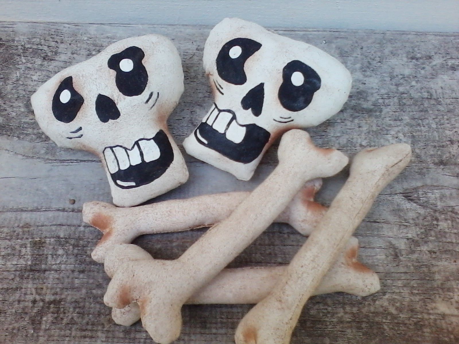 Primitive Halloween Skull & Crossbone Ornies Bowl Fillers Decor