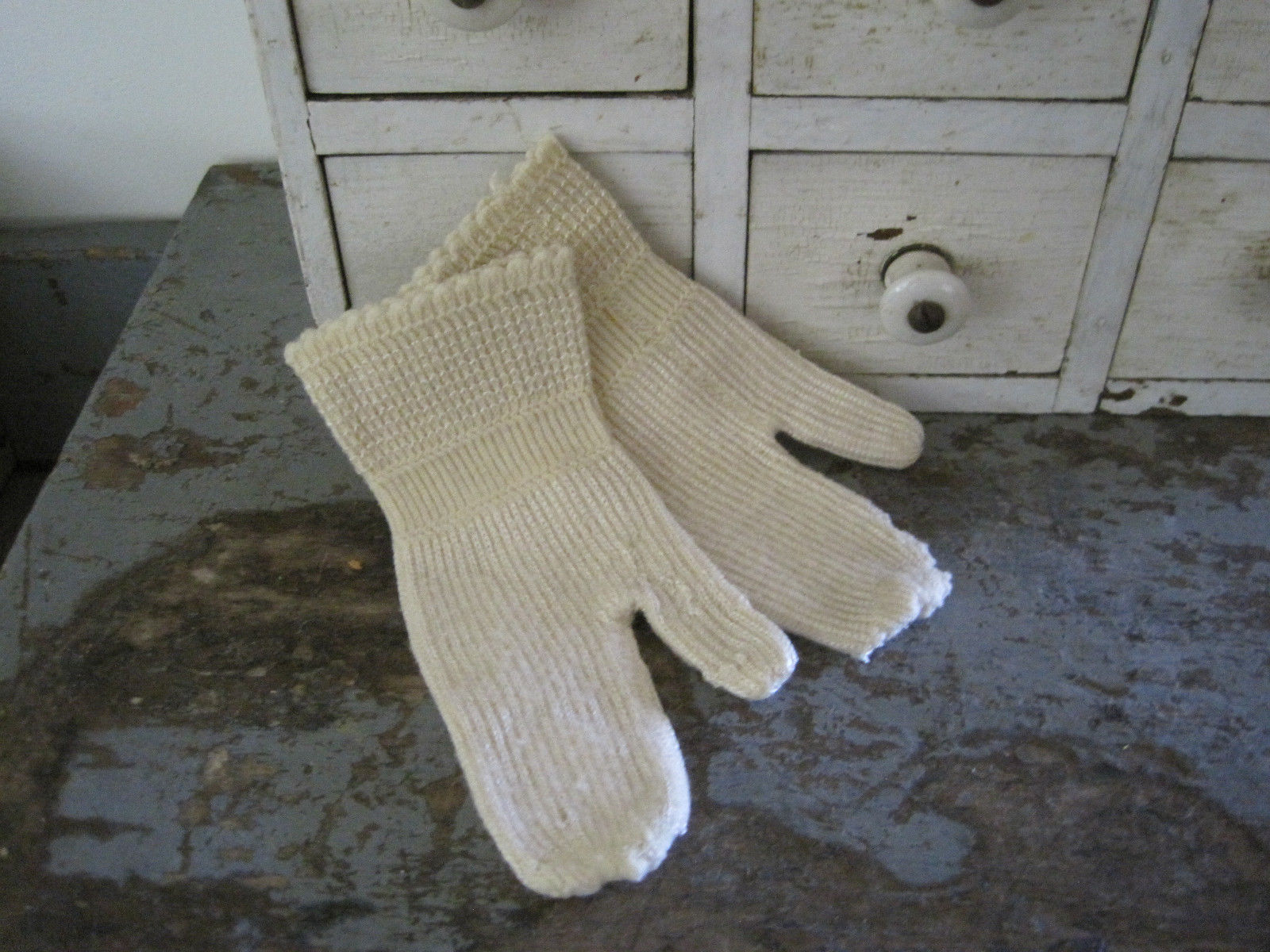 Old Primitive Pair of Baby Child Fabric Mittens Great American Country Find AAFA