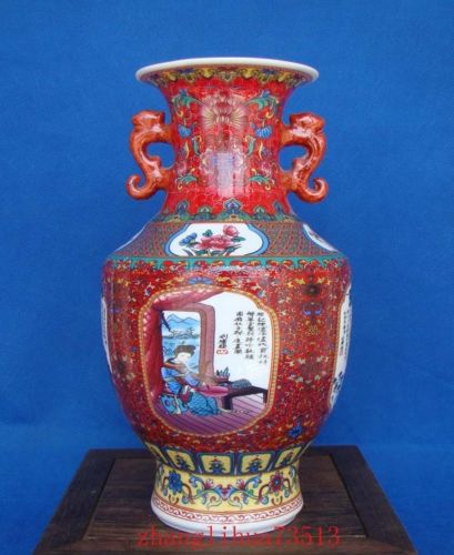 Title (ebay affiliate link): Handmade Painting Cloisonne Porcelain Vase Red Figures W QianLong Mark