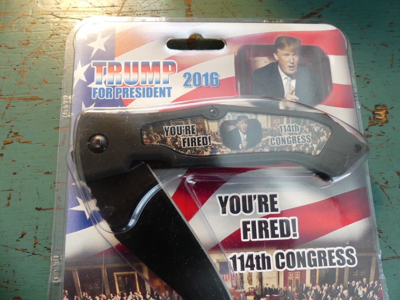 Title (ebay affiliate link): 2016 Donald Trump for President You''re fired 114th Congress Pocket knife package