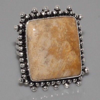 ANTIQUE STYLE Fossil Coral Ring US 8 Jewelry I10190