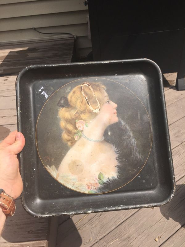Title (ebay affiliate link): Old Serving Tray Mildred 80 Antique Victorian Coke Lady