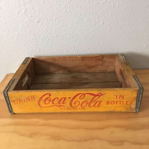 Title (ebay affiliate link): Vintage Yellow Coca Cola Wood Crate Carrier Oakland California RARE