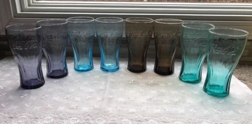 Title (ebay affiliate link): SET OF 8 McDONALDS COCA COLA GLASSES PURPLE TEAL SMOKE BLUE 2009 PROMOTION
