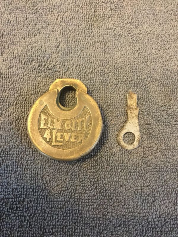 Antique 4 Lever Push Key Pancake Padlock Elm City