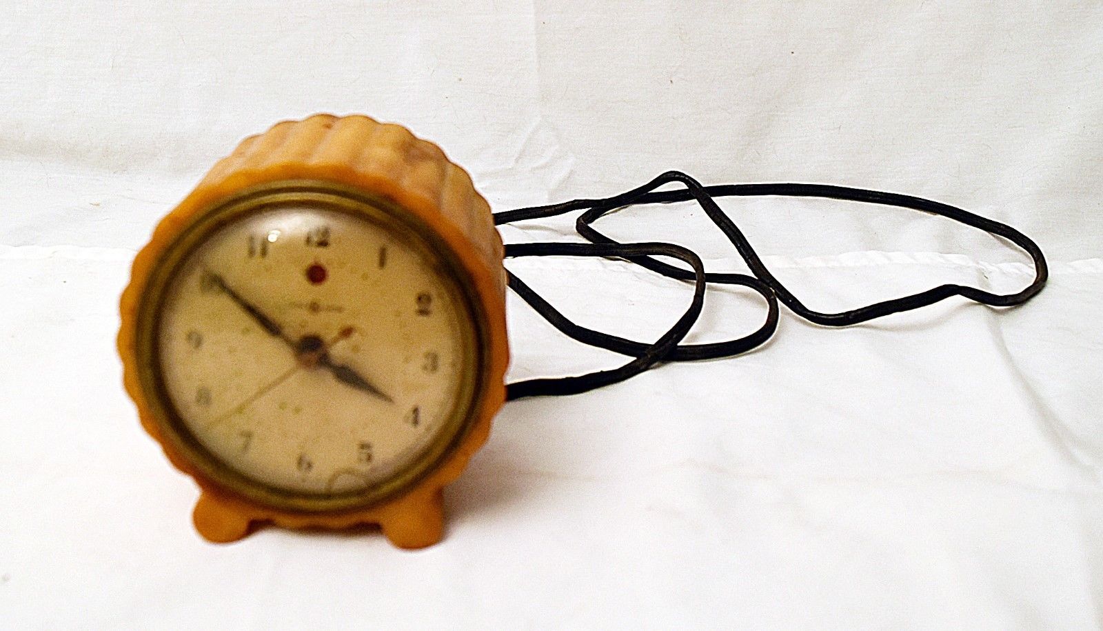 Title (ebay affiliate link): ANTIQUE GE ELECTRIC TABLE CLOCK 3 1/4 FACE - BUTTERSCOTCH BAKELITE CASE