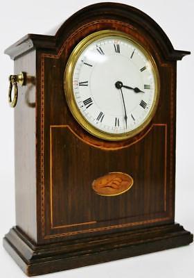 Antique French 8 Day Mahogany Inlaid Mantel Desk Clock Platform Escapement C1900