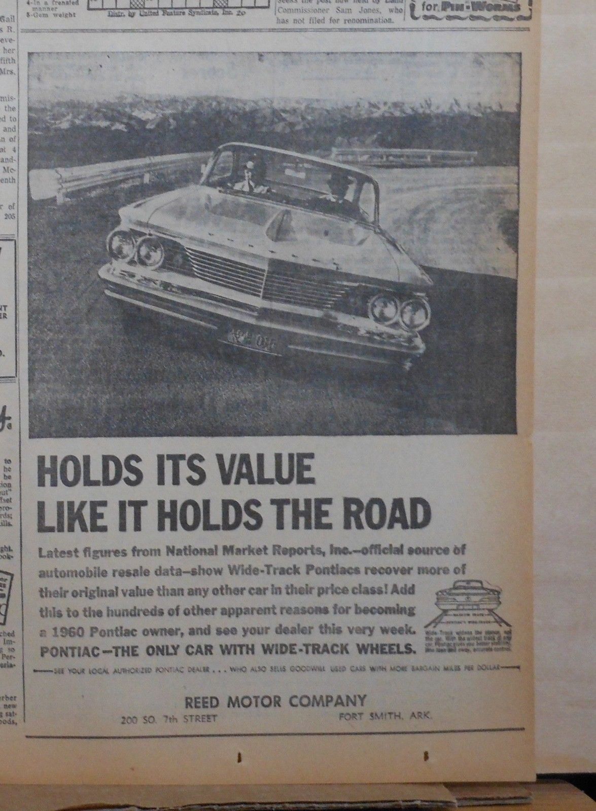 1960 newspaper ad for Pontiac - Holds value like it holds the road, Wide Track