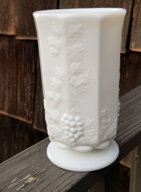 Title (ebay affiliate link): Vintage Milk Glass Paneled Grape Pattern 6.25" Footed Vase.