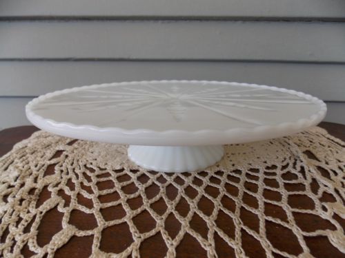 Title (ebay affiliate link): Vintage White Milk Glass Cake Plate Stand with Scalloped Edge
