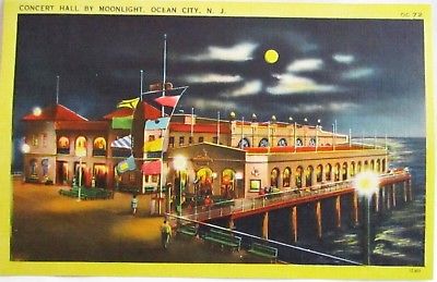 Title (ebay affiliate link): 1940s POSTCARD CONCERT HALL BY MOONLIGHT OCEAN CITY NJ