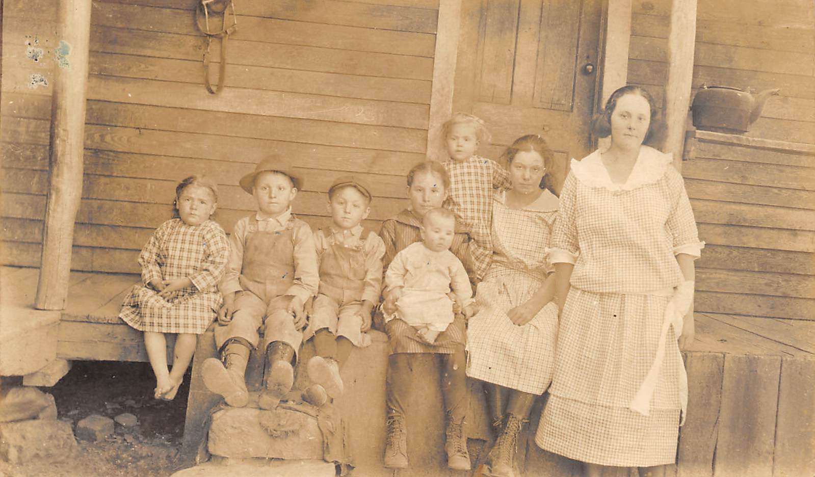 Title (ebay affiliate link): 1920s RPPC Real Photo Postcard Depression Era Farm Family Children Kettle