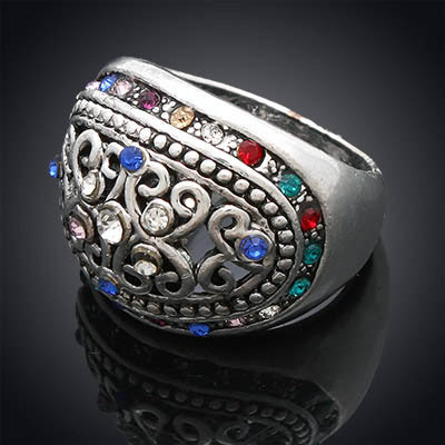 Multi Color Crystal Antique-Silver Cocktail Ring Box