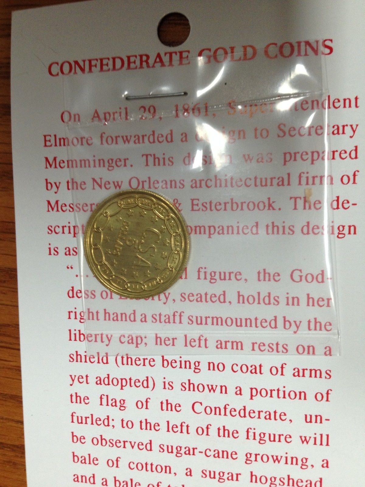 COIN FOR REENACTMENT CONFEDERATE FIVE DOLLAR GOLD COIN REPLICA SOUVENIR NOT REAL