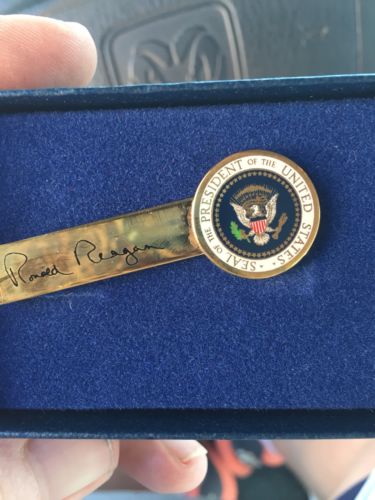 Title (ebay affiliate link): President Ronald Reagan Gift Signiture Engraved Tie Bar