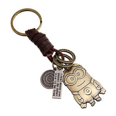 New Creative Cute Alloy Minions B Vintage Woven Leather Key Chain Women Men Gift