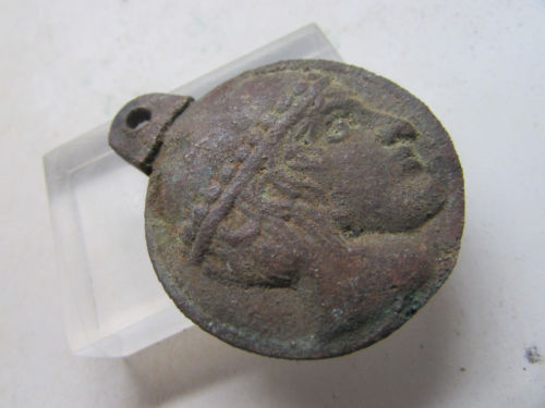 Title (ebay affiliate link): ANCIENT GREEK BRONZE AMULET WITH ATHENA AND SATYR
