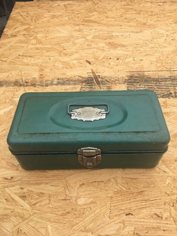 Title (ebay affiliate link): VNTG UNION STEEL METAL TACKLE TOOL BOX UTILITY CHEST FISHING USA Blue/green